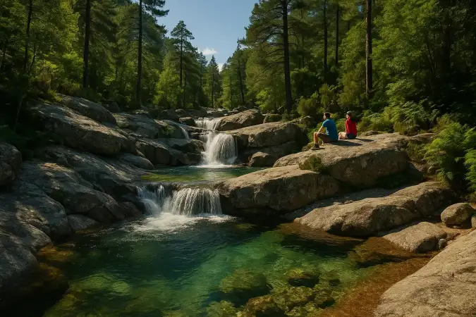 Imaginez le son de l’eau qui s’écoule sur les roches lisses, le parfum des pins et la fraîcheur de l’ombre… Un véritable havre de paix.